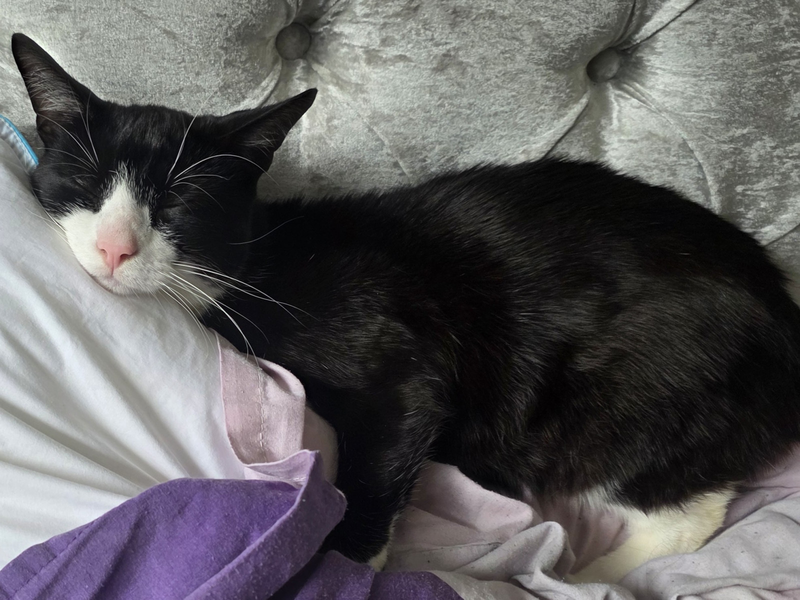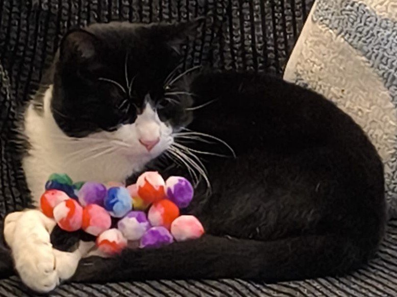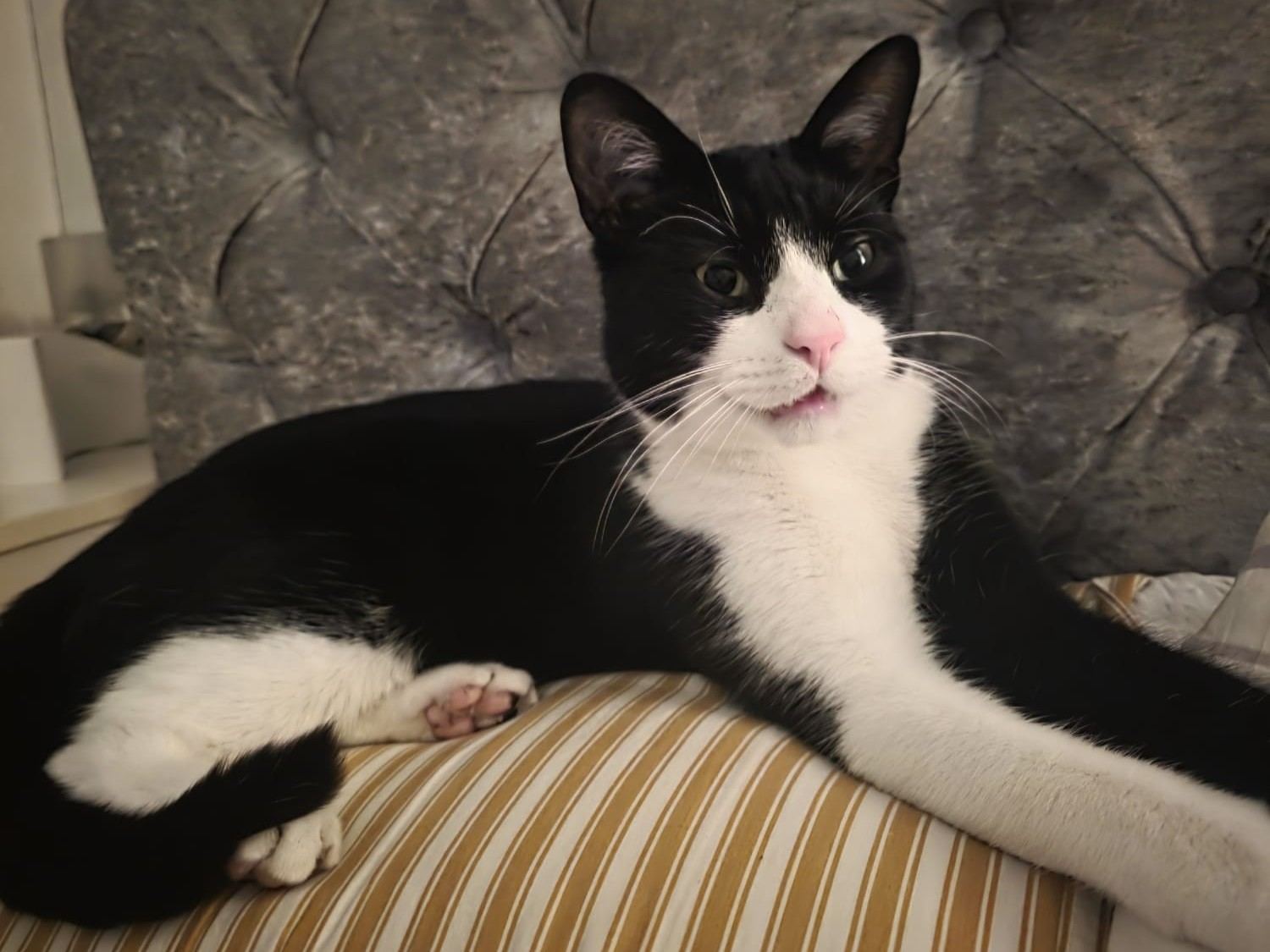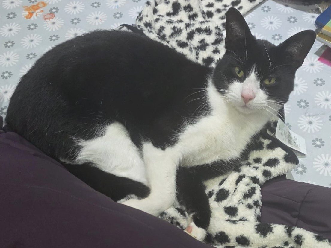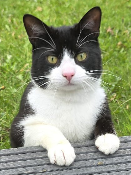 Barney is a gorgeous black-and-white tuxedo boy, aged 1 year and 8 months, with a big personality and an even bigger heart. He’s a loud, cheeky chappy who likes to make his presence known, especially when he comes back into the house! If you’re looking for a cat who chats back and enjoys being part of the action, Barney is your boy!