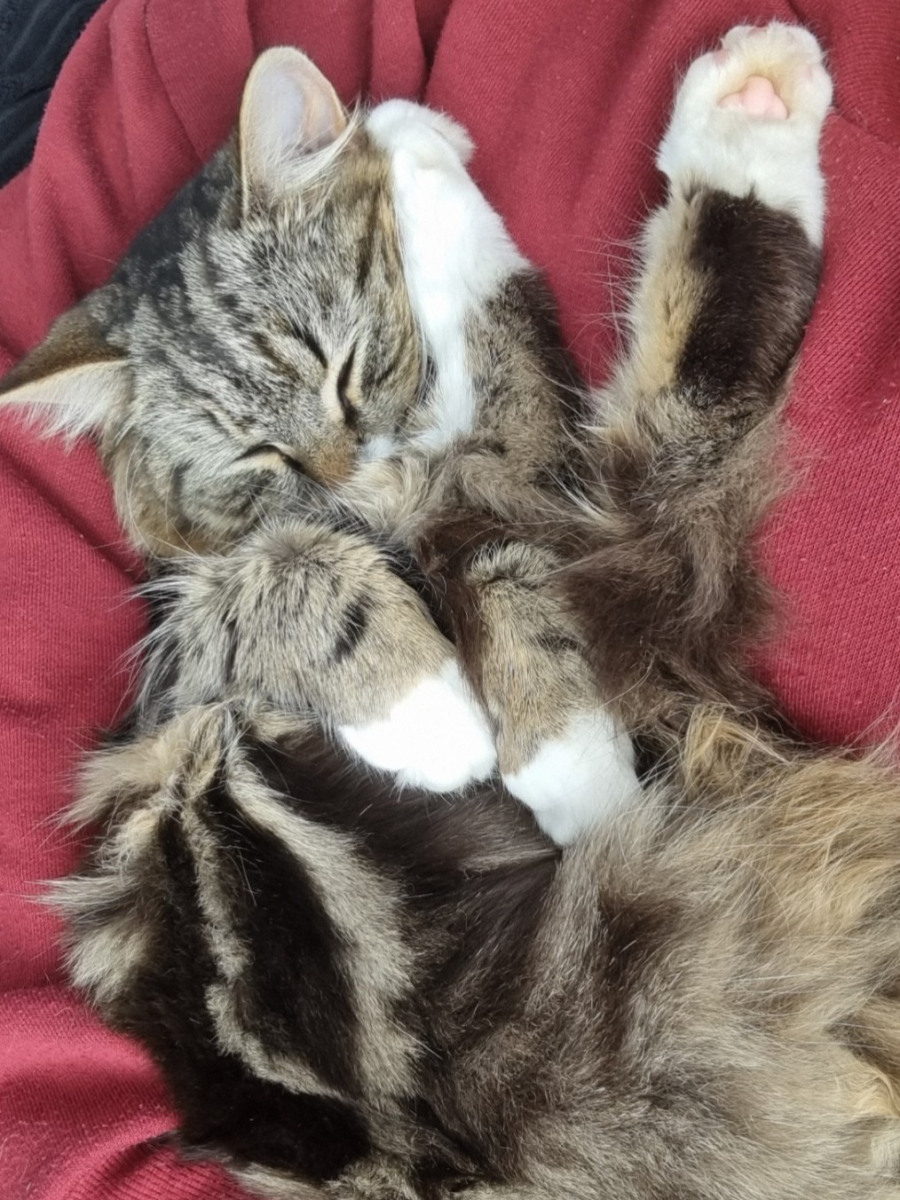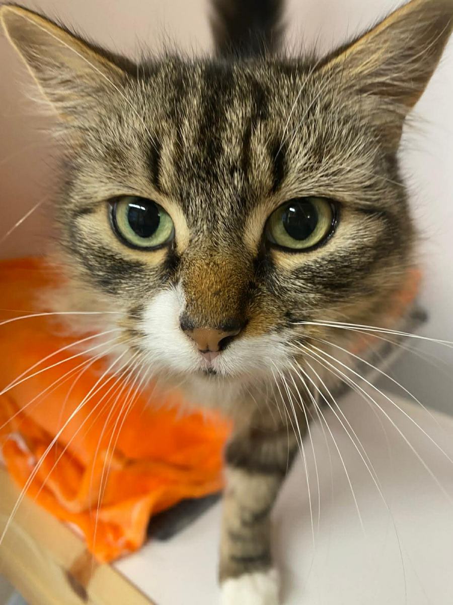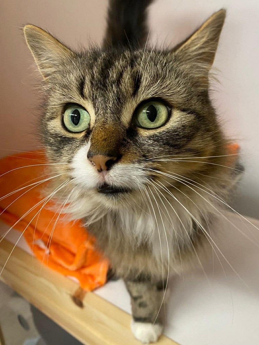 Marnie is a beautiful long-haired tabby and white lady with the softest fur and the gentlest soul, and a delightfully cheeky personality to match.