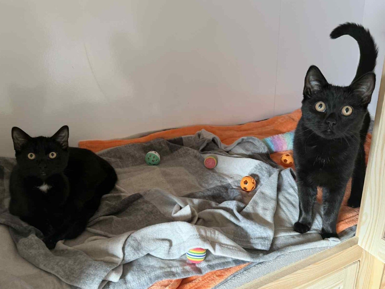 These two are the best of friends, playful, affectionate, and full of fun. You’ll often find them chasing each other around, sharing their toys, or snuggling up together for a cosy nap. They absolutely adore their humans too! Both love being fussed over, enjoying cuddles, and never say no to a tasty treat.